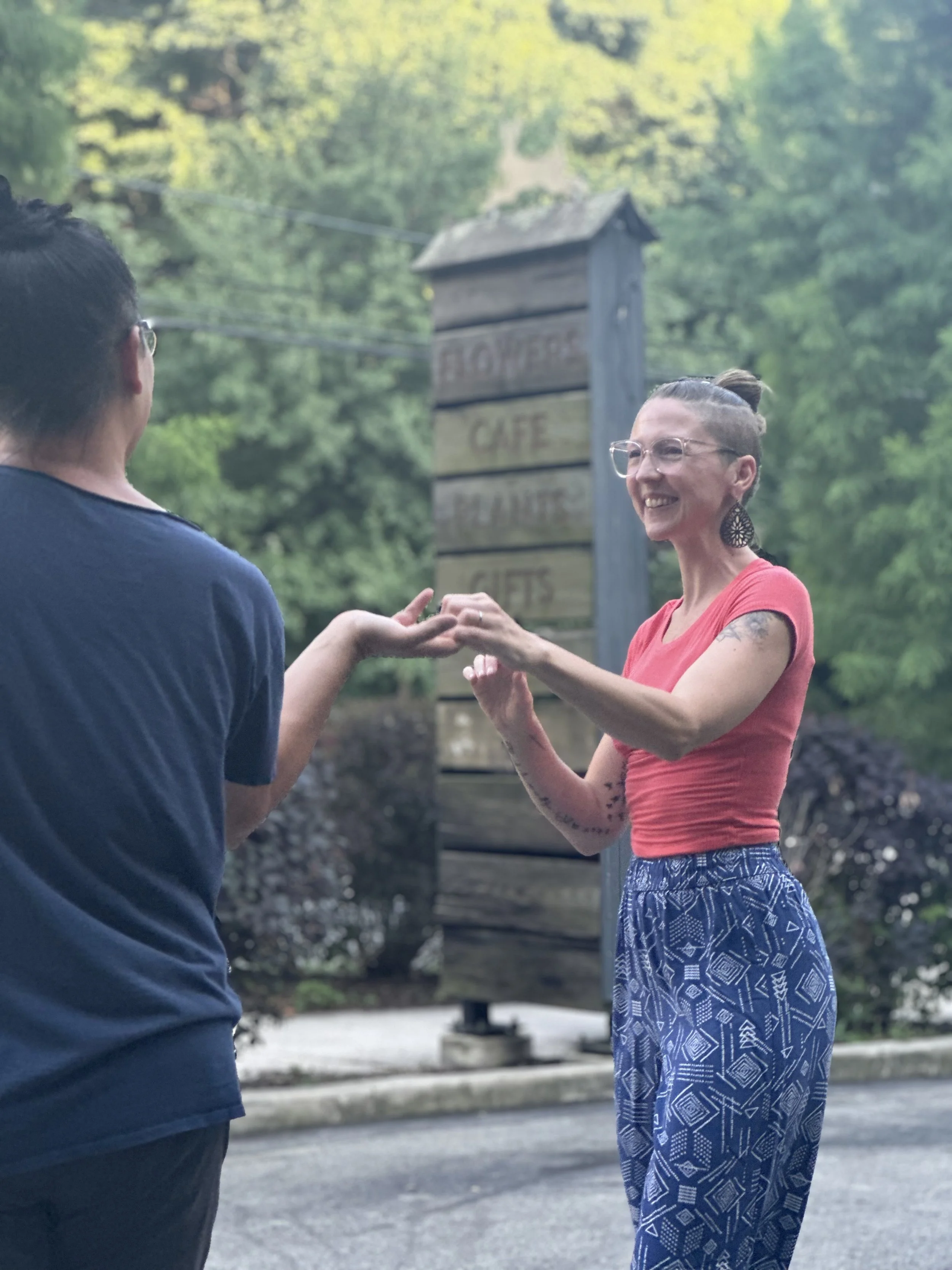 Formerly known as Ballroom Philadelphia in South Philly, Brandi owned a cute studio in which she and her husband taught until 2020. Upon the arrival of Covid, the doors unfortunately closed. Shortly after the loss of their business Brandi sustained a significant bicycle injury which has required ongoing treatment. With gratitude and persistence, she is feeling well enough to rekindle the fire for teaching and dancing! Additionally she has redeveloped a brick and mortar studio as part of her home in East Falls. It has long been a dream to create this studio as part of her home. All this to say, we hope you will feel the cozy vibes and easy energy that Brandi has to offer.
